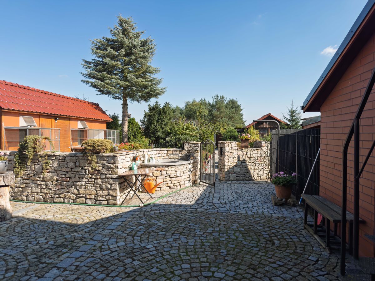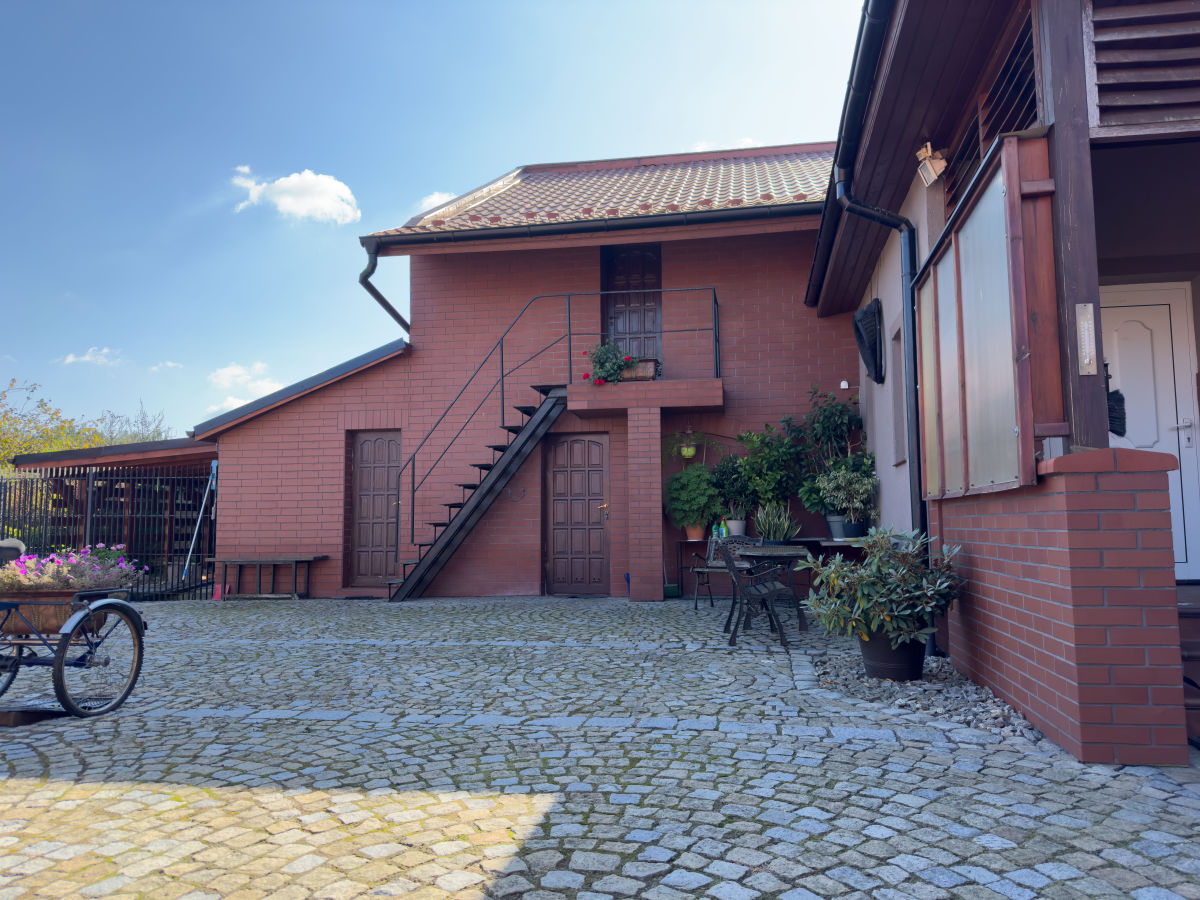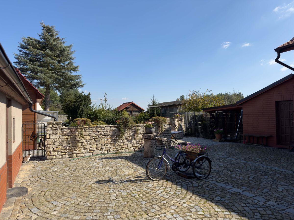 Dużo budynków gospodarczych, część z nich wcześniej służyła jako gołębnik, dodatkowo kojec dla psa