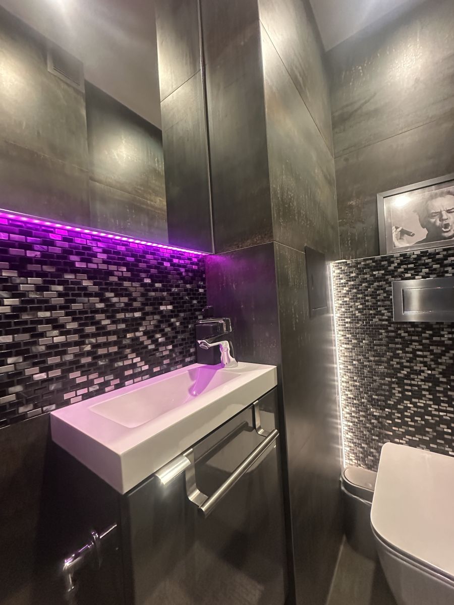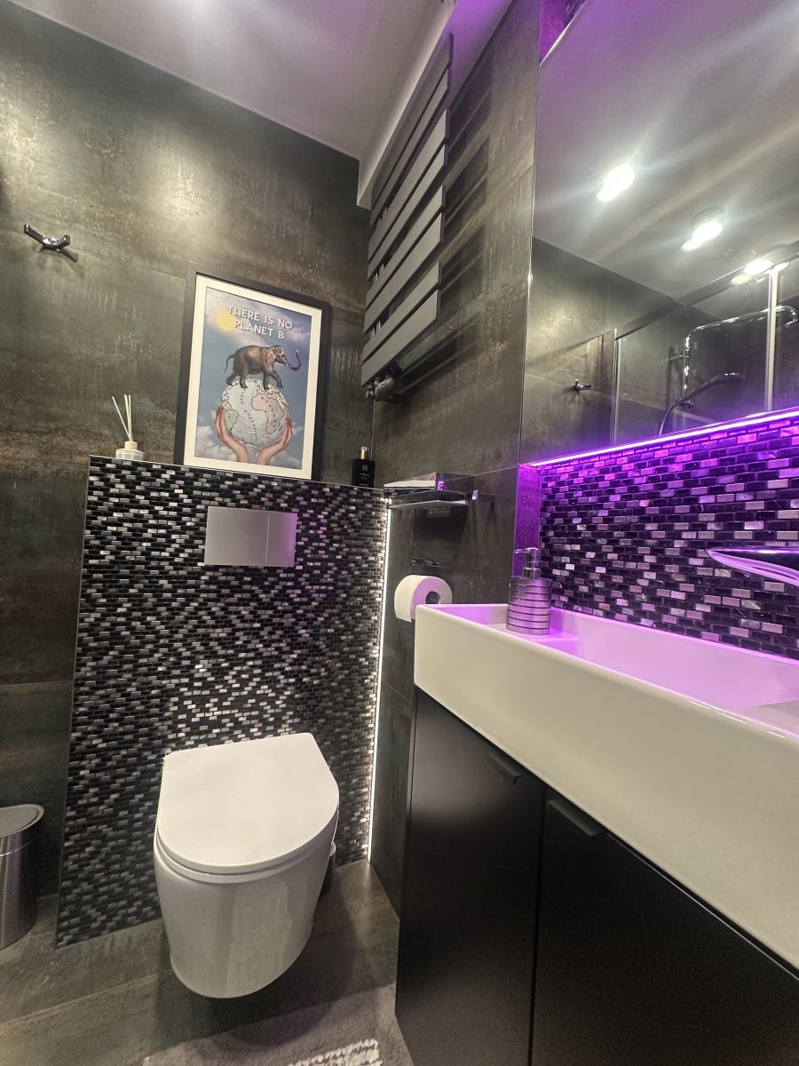 – osobne WC z funkcją bidetu, umywalka, szafka z podgrzewanym lustrem i oświetleniem): 1 m2