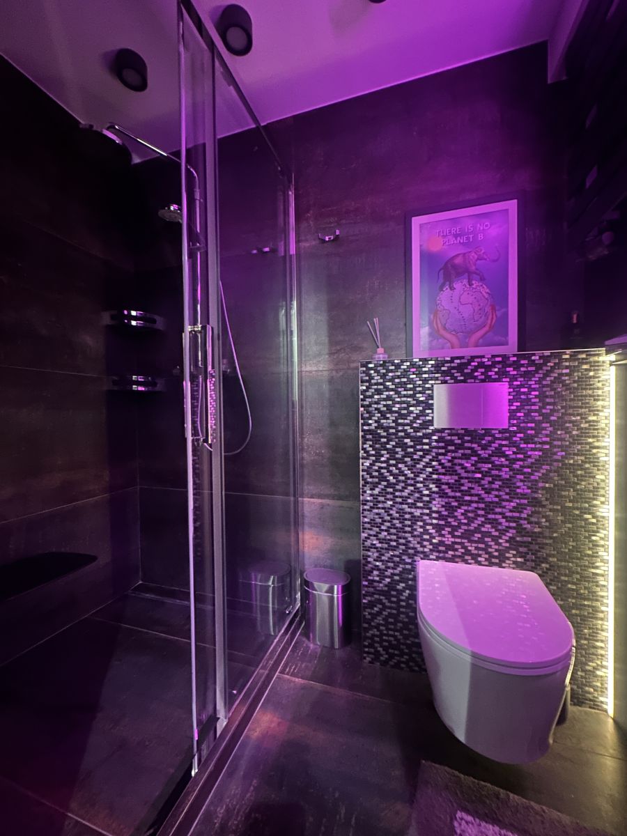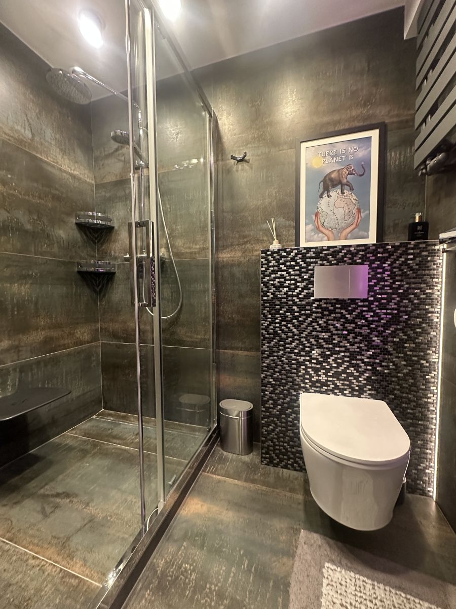 – luksusowa łazienka z WC , prysznic, umywalka z szafką pod umywalką, oświetlenie lustra, podgrzewane lustra): 3 m2