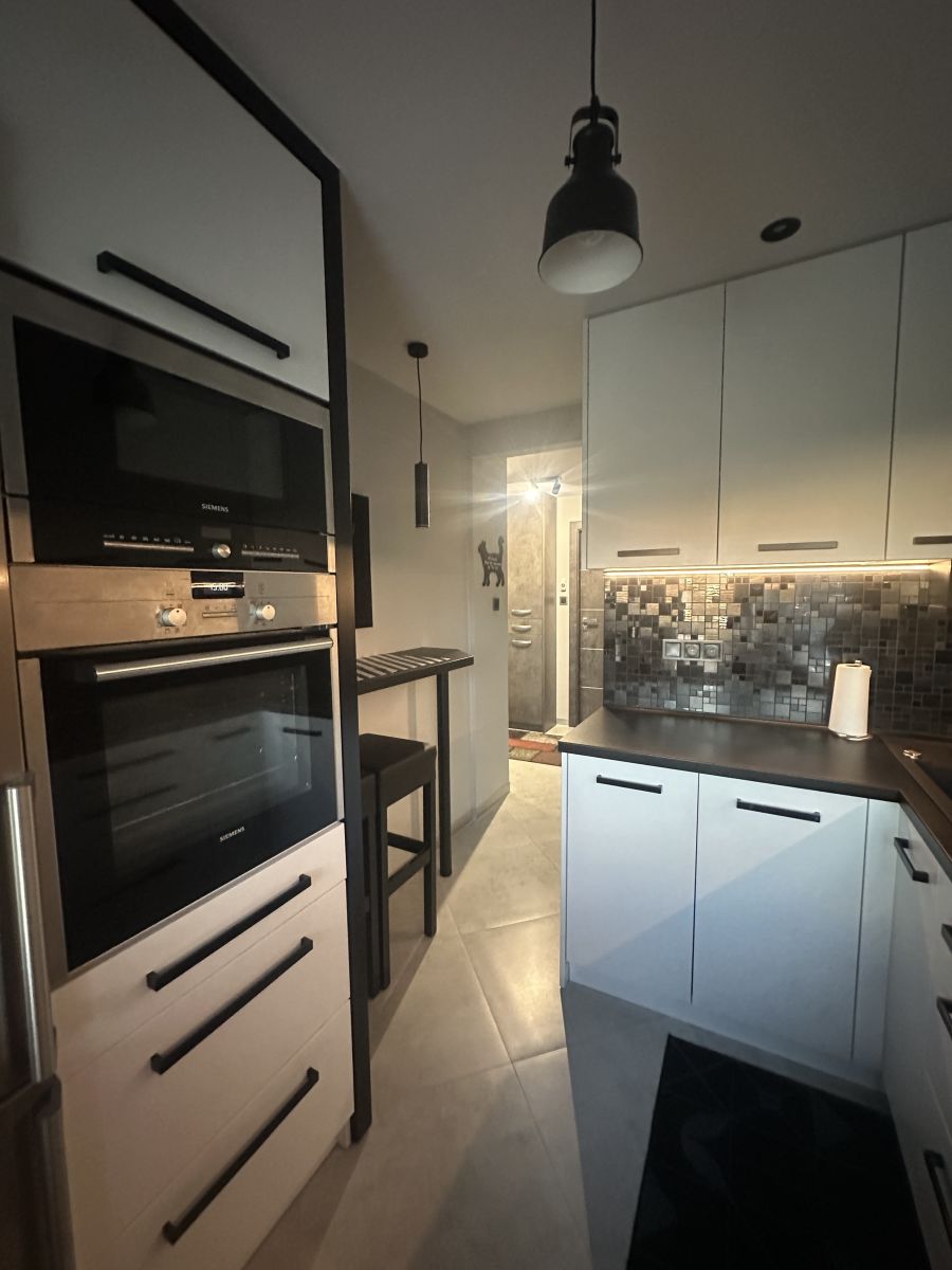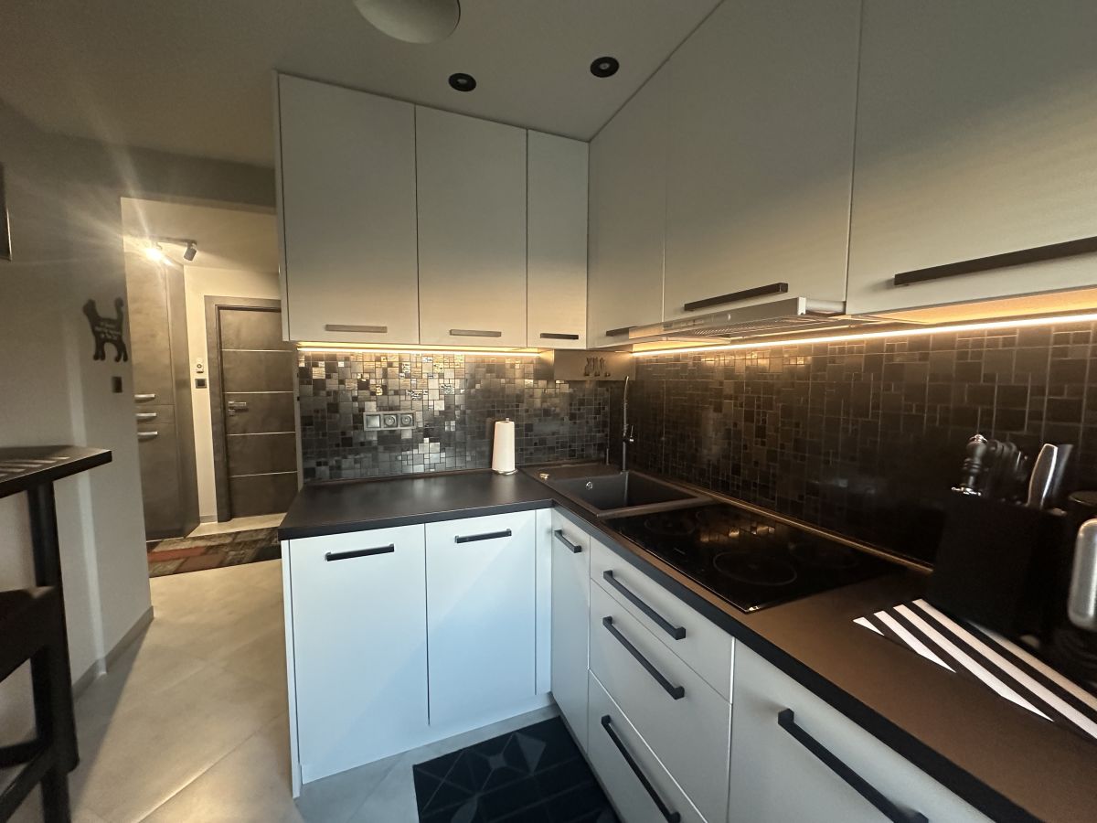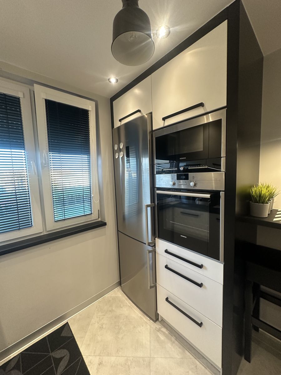 – piękna, nowoczesna, bardzo stylowo urządzona kuchnia z AGD w zabudowie (zmywarka, płyta indukcyjna, piekarnik, kuchenka mikrofalowa, lodówko-zamrażalnik, okap), podświetlenie szafek led: